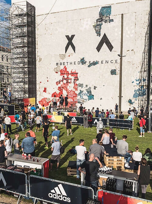 Adidas' "Be the difference" campaign, during the Champions League, was in full swing when our client approached us with a special idea. Brave as we were, we accepted the challenge that no one else would. The idea: to hit a plastered wall with footballs during an activation event so that the plaster crumbles and a campaign motif behind it is exposed.