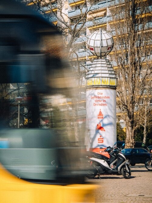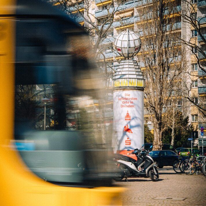 Nine regional motifs, ten product motifs, and several social media reels later, the campaign took off. We rolled it out across all touchpoints – posters, city light posters, Litfaß columns, a fully wrapped tram, buses, carousel ads, reels, stories, and radio spots. The combination of emotional regional identity and quantified promises such as “21,000 ATMs nationwide” ensured citywide visibility. The strongest feedback centered on the employee motifs. The personal visuals resonated so strongly that they were extended into the following year – proof of how essential personality and personal advisors are as a USP. Exactly where life happens. So popular, so familiar, so natural.