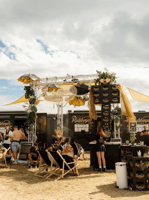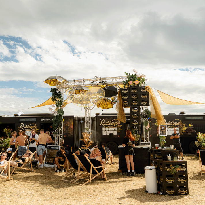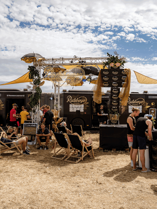 Radeberger summed it up: "Extremely cool, high-quality and consistently designed. I thought our cold start on the completely redesigned activation area was a complete success." The SMS Festival itself called it "the best in our history" and praised the collaboration as "very hands-on and solution-oriented." A traditional beer brand gained real credibility in the techno scene in just four days – not through volume, but through attitude and attention to detail. The black and gold festival trial by fire was a resounding success.