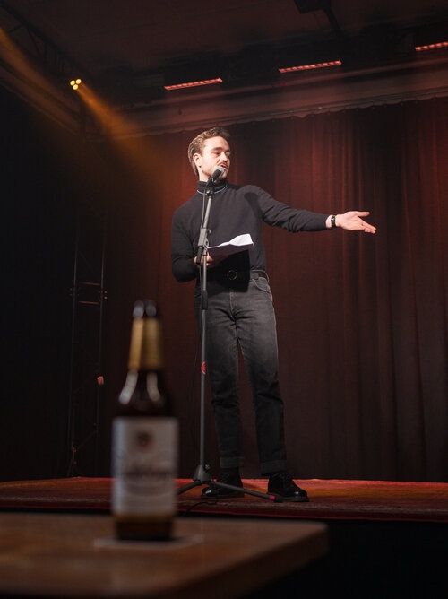 We developed the Enabler Concept: Radeberger backs real passions instead of pushing bland advertising. Through co-creative workshops, we shaped four strategic collaborations. Jean-Marc Heukemes received support for his show “Hip-Hop Culture on Air.” Poetry slammer Julius Keinath brought the “Lesen für Bier” (“Read for Beer”) event format to Erfurt. Nicole Berth realized her Bike Weekender in the Elbe Sandstone Mountains. And an up-and-coming band received a tour poster designed by Lars P. Krause. Each partnership received tailored videos, a photo series, and behind-the-scenes content. The campaign tagline #AufDieLeidenschaft ran consistently through every format.