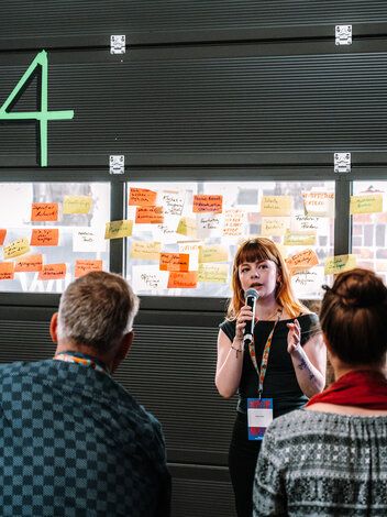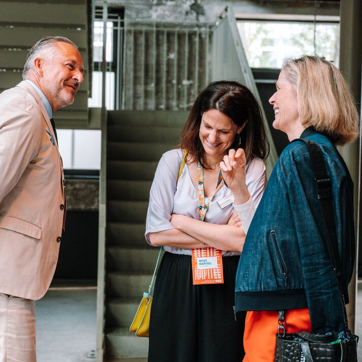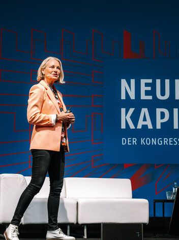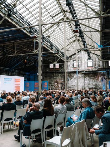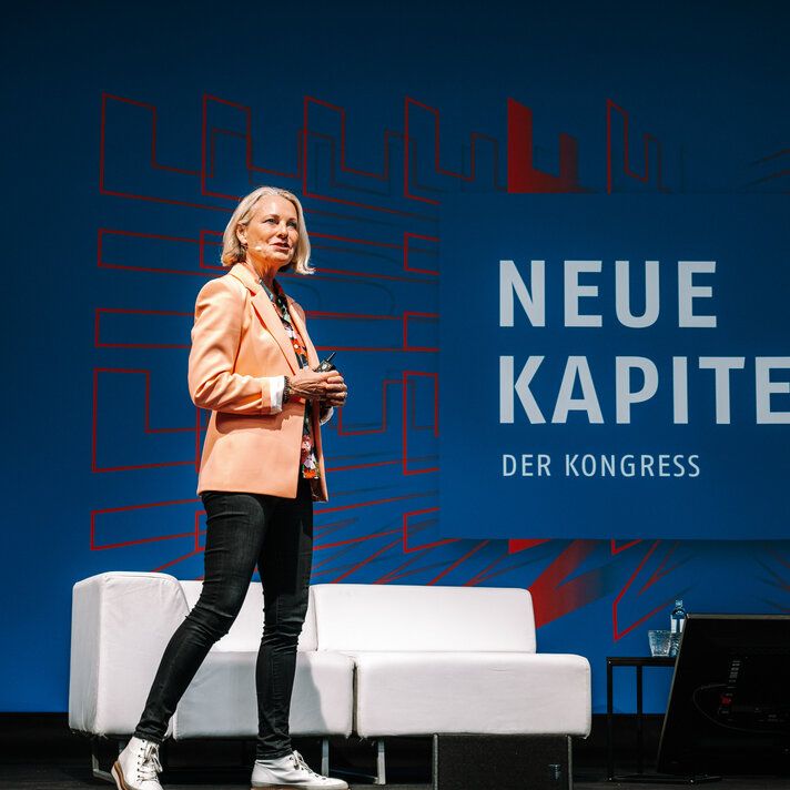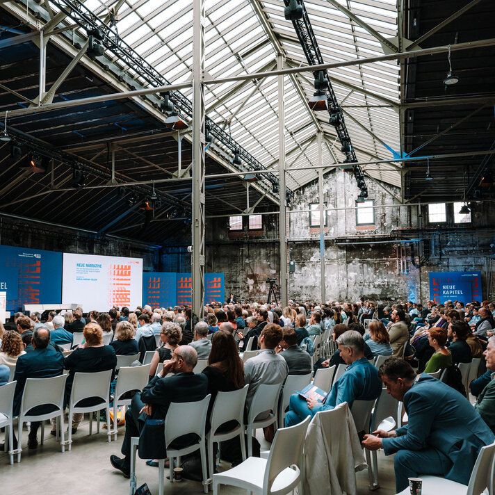 Als Leitmotiv setzten wir "Neue Kapitel" direkt auf das Cover – visuell und inhaltlich. Und mit co-kreativen Workshops schrieben wir die Kampagnenstory der “Neuen Kapitel” weiter. Corporate Design, digitaler Auftritt und Kommunikation aus einer Feder. Parallel entwickelten wir co-kreativ die Event-Dramaturgie: Leipzig mit Diskussionsabend, Berlin mit Kongress in den Wilhelm Studios. Das Herzstück: eine Main-Stage, dargestellt als aufgeschlagenes Buch. Wie ein Bestseller, nur live und zum Anfassen.