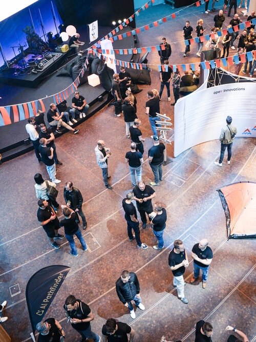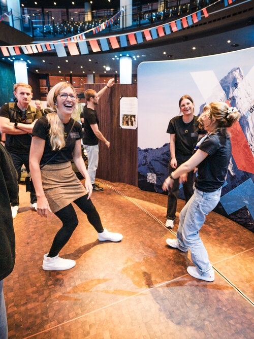 In mehrtägigen Co-Creation Workshops entwickelten wir gemeinsam die Eventidee – echte Teamarbeit statt Solo-Flug. Mit der "Zwicky-Box" Methode entstanden acht verschiedene Leitmottos, aus denen "FEEL THE COSMOVERSE" als strahlender Sieger hervorging. Design-Futuring und Future LinkedIn Post Methoden erweiterten den Vorstellungsraum bis ins Unendliche. Wir coachten interne Speaker zur Entwicklung interaktiver Formate und organisierten das Projektteam in thematische Arbeitskreise – jeder ein Experte für sein Segment des Universums. Die Szenografie folgte einem erlebnisorientierten Konzept mit stufenweiser Raumöffnung. Statt Frontalberieselung setzten wir auf echte Partizipation und Dialog – Mission Interaction erfolgreich gestartet.