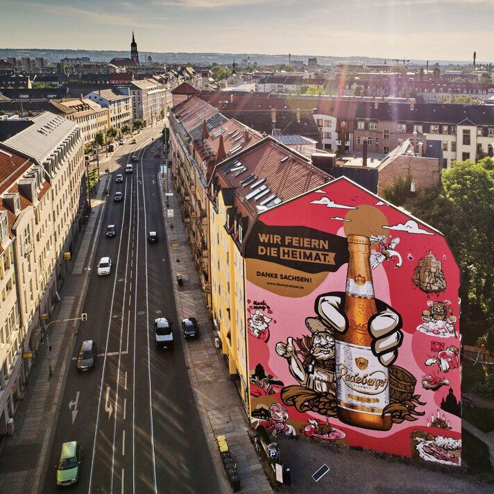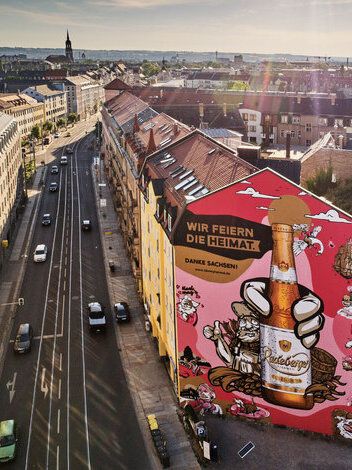 Alle Heimatgefühle formten wir dann zu vier Mural-Motiven um. Dresden, Erfurt, Magdeburg und Rostock hatten nun einzigartige Fassaden voller Heimat-Flare.