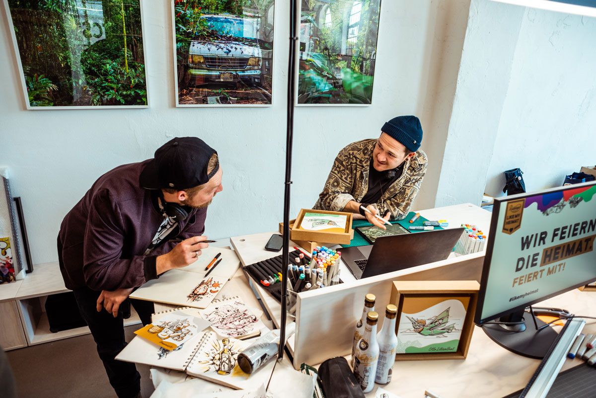 Mit den ostdeutschen Street-Art-Maestros Capstan und Tulip haben wir die gesammelten Heimatgefühle in rund 200 Kampagnen-Illustrationen zur Heimatgalerie gezaubert. Jede ein Unikat. Handgezeichnet und top urban-artsy. Alle Motive konnten darüber hinaus auch direkt nach Hause bestellt werden.