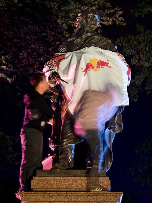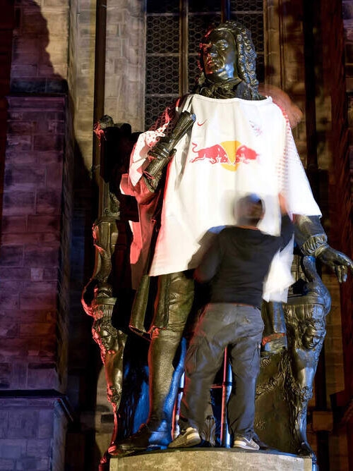 Die Passant:innen staunten nicht schlecht, als sie am nächsten Morgen ganz neue Attraktionen in der Stadt entdeckten. Bach und Goethe, Leibniz und Wagner im neuen RB-Dress. Ein kleines Anecken mit der Polizei gab’s, aber wir haben sie schmunzeln sehen, als sie die Trikots abnahmen. Dafür gab’s eine große Umarmung der Presse, die den Clou feierten.