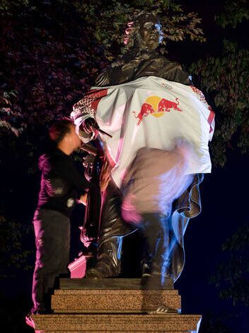 In einer Nacht-Aktion kleideten wir die bekanntesten und beliebtesten Statuen der Stadt mit dem neuen Trikot ein. Passend zurecht geschneidert.