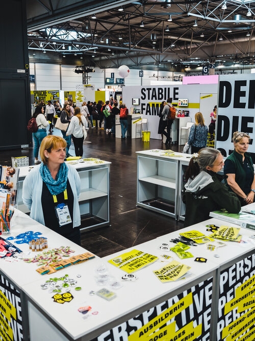 "HEUTE LAUT. MORGEN STARK." – unsere Botschaft brachte die Kinder- und Jugendhilfe als das auf den Punkt, was sie ist: ein Standortfaktor für die Zukunft. Direkte Ansprache an die Politik, klare Kante, keine Kompromisse. Dazu ein Design, das niemand vom Land Sachsen erwartet hätte. Die sächsische Träger- und Projektlandschaft haben wir co-kreativ in die Botschaftenentwicklung einbezogen. Thumbs up gab's dabei nicht nur vom Ministerium und Besuchenden, sondern auch von anderen Messebauern, die über unserr nachhaltige Materialauswahl und Sorgsamkeit positiv überrascht waren. "So wenig Müll zu einem so großen Messestand mit Merch haben wir hier noch nie gesehen."